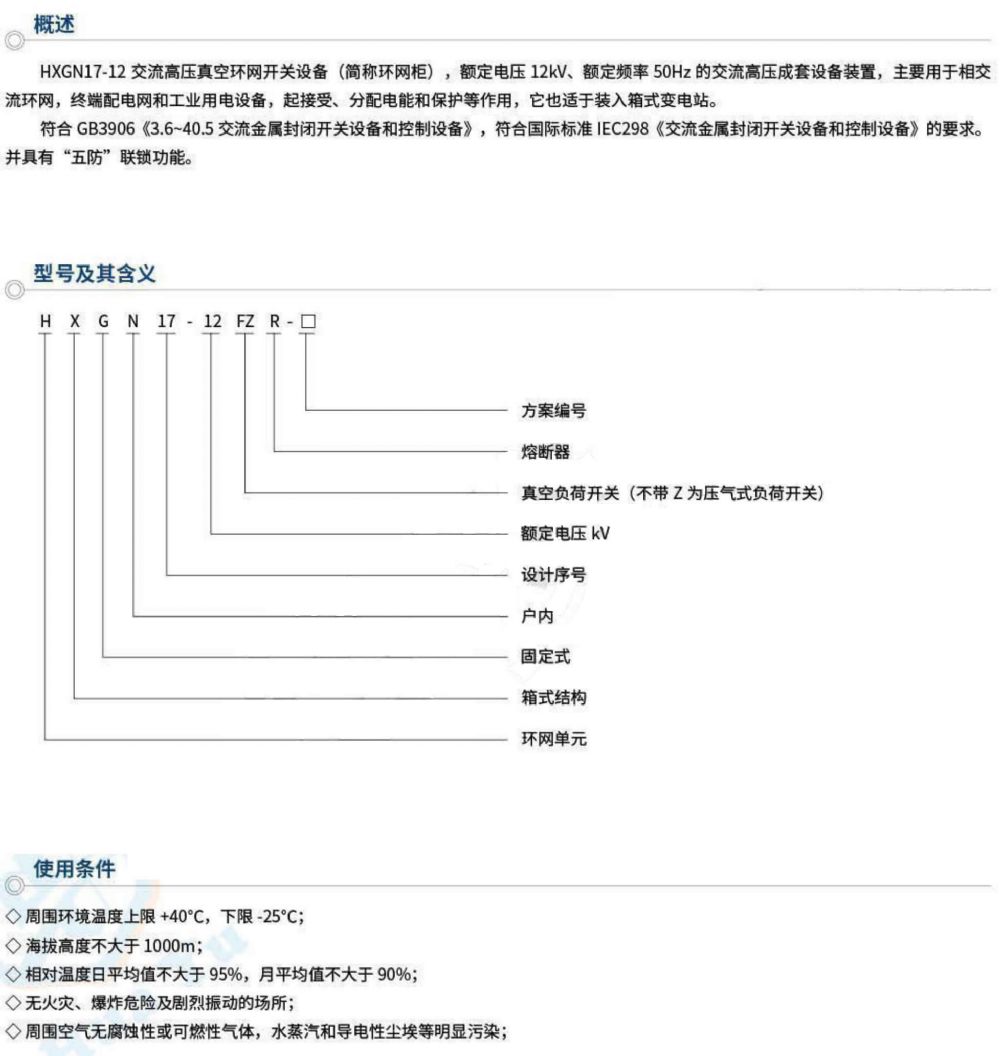 HXGN17-12交流高壓真空環(huán)網(wǎng)開關(guān)設(shè)備