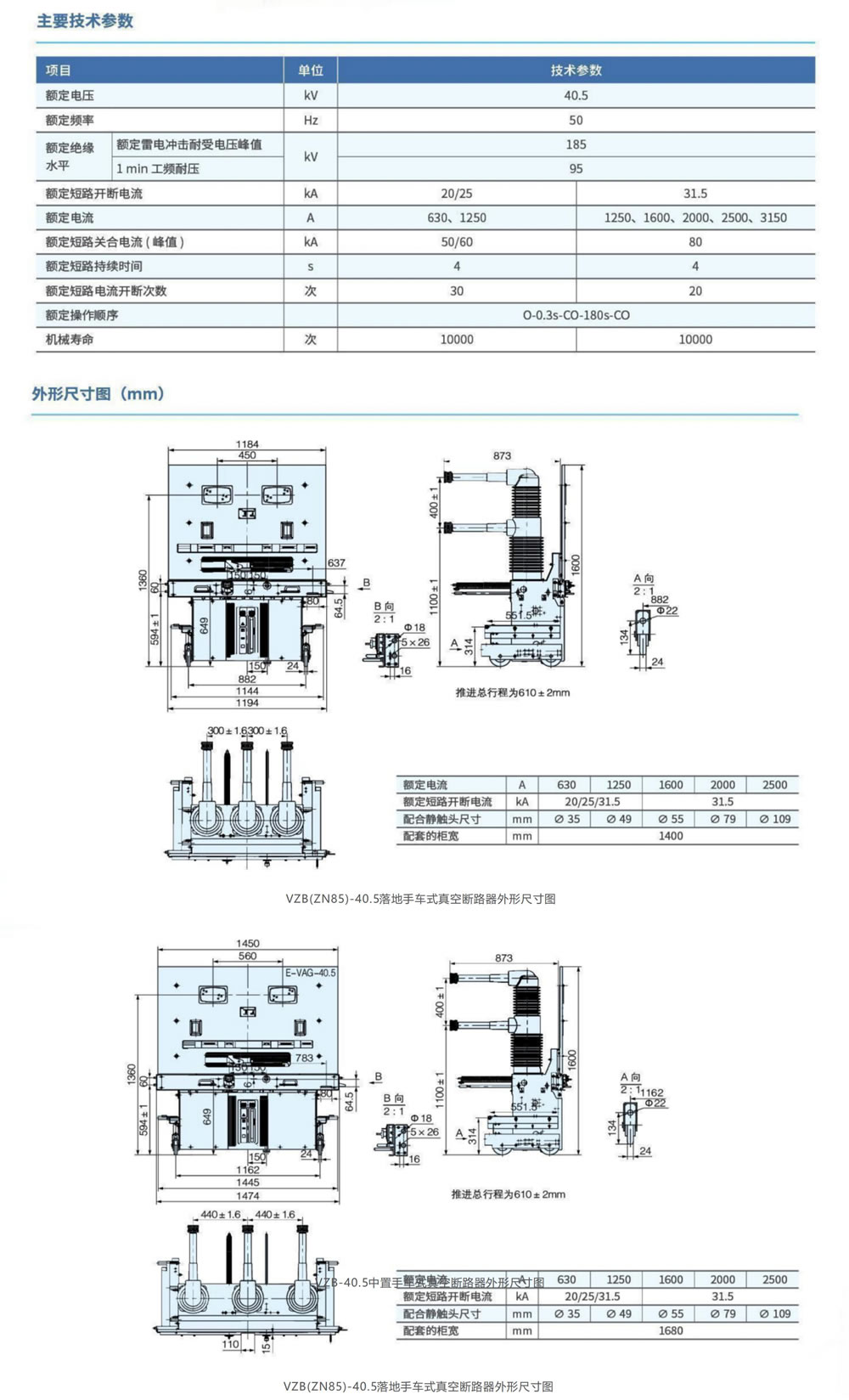 VZB(ZN85)-40.5落地手車式真空斷路器(配柜1400mm)