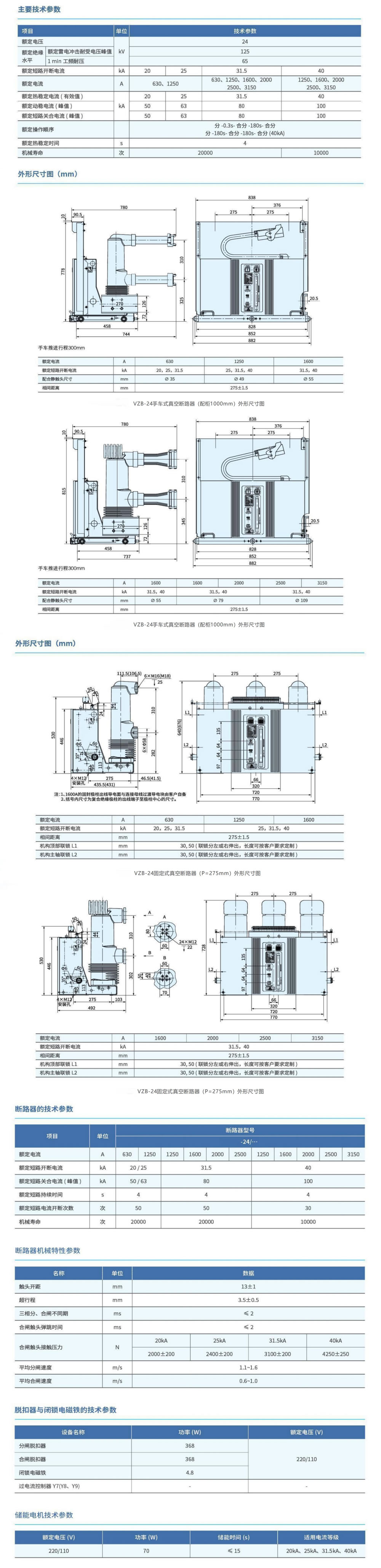 VZB-24手車式真空斷路器(配柜1000mm)